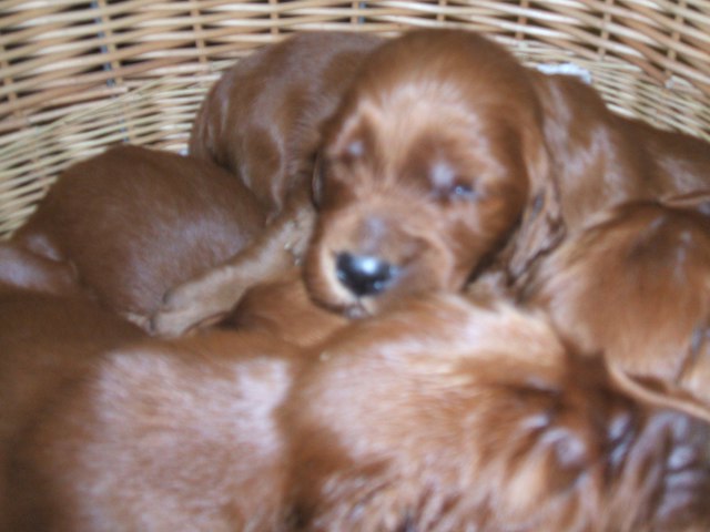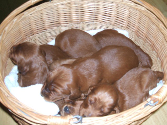 A Basket Full of Pella Winter Litter Puppies at 15 days old.
