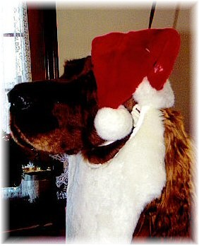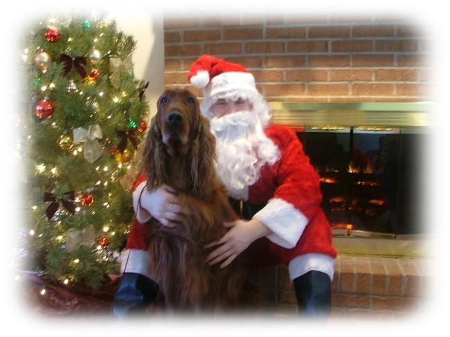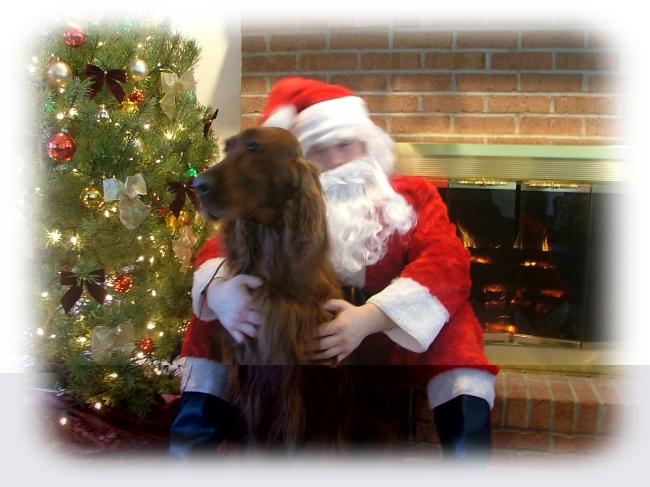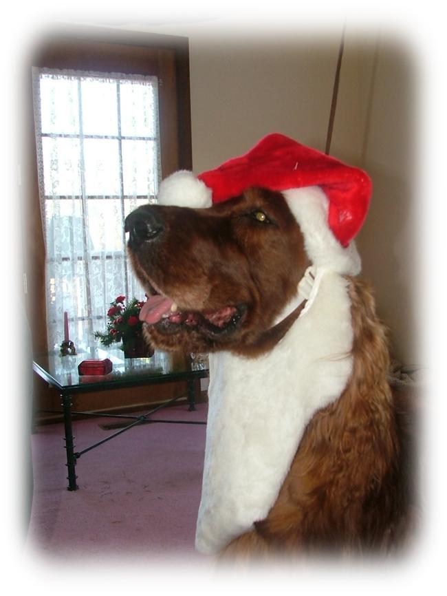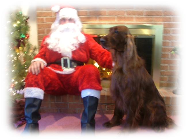 | Clyde playing Santa at the Golden Triangle Irish Setter Club Christmas Party |